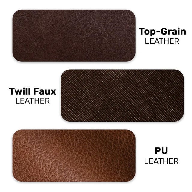 - PU Leather, also referred to as synthetic leather, is a versatile and budget-friendly choice. It delivers the aesthetic appeal and texture of authentic leather, coupled with remarkable durability and ease of upkeep. This is the ideal selection for those who wish to balance stylish allure with cost-effectiveness.