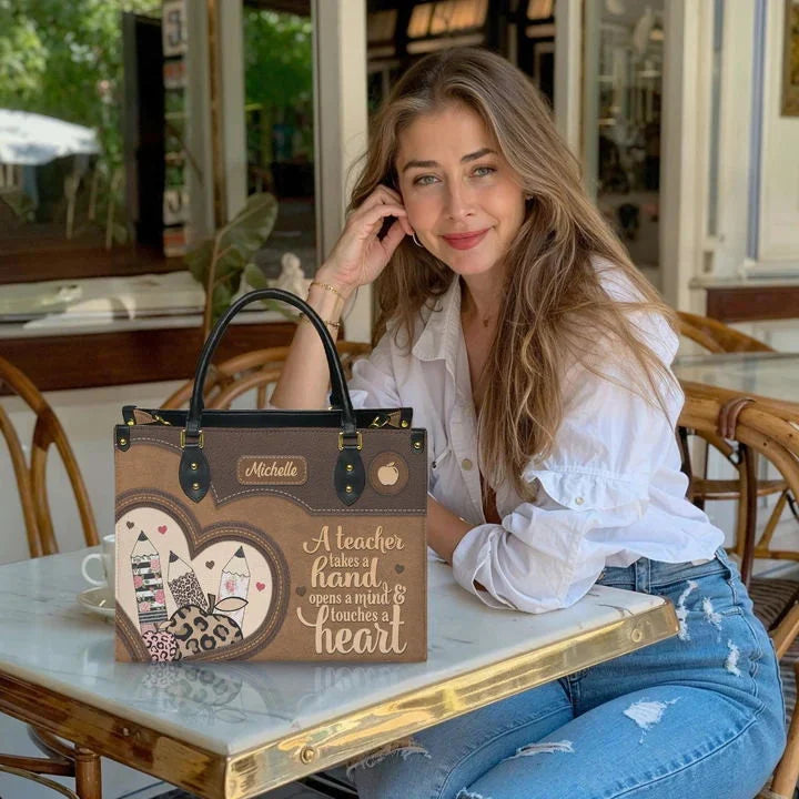 The custom leather handbag has a luxurious feel to it. The leather is soft and supple, and the customization option allows for a personal touch.